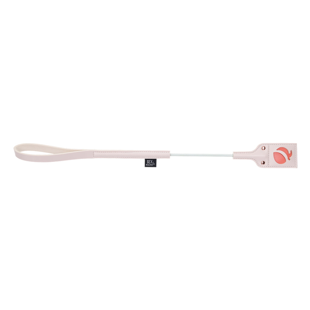 Prepare yourself for a playful adventure where naughty meets nice with the Peaches ‘n CreaMe Peach Impressions Crop! Crafted for those who like a bit of flirtation with their domination, this riding crop brings lighthearted silliness to every swat of your bottom! With a playful peach cutout on the looped tip, each swat delivers a delightful impression that's as sweet as a peach. The sturdy handle ensures a firm grip, while the peachy details pair perfectly to your playful pursuits.